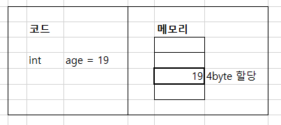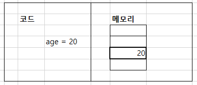 age란 변수명은 그대로지만 안에 들어있는 실제 값은 19에서 20으로 바뀐 것이다.