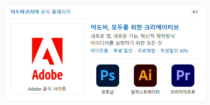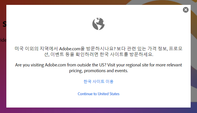 어도비 홈페이지 접속 시 한국사이트로 이동합니다.