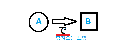 오늘은 일본어에서 아주아주 많이 사용되는 で(De, 데)에 대해서 알아보려고 합니다. 이 で는 아주 많이 사용되서 뜻이 헷갈릴 때가 있어서 잘못 사용하는 경우도 많이 있는 것 같아요. 그래서 사용되는 상황과 의미를 쉽게 이해하실 수 있게 정리를 해보았습니다. 먼저 で의 개념에 대해서 도식화로 예를 들면 아래와 같습니다.