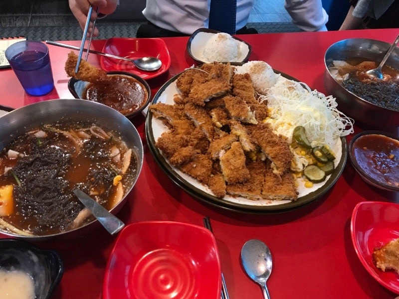 2. Spicy Tonkatsu & Cold Noodles – A Perfect Korean Contrast