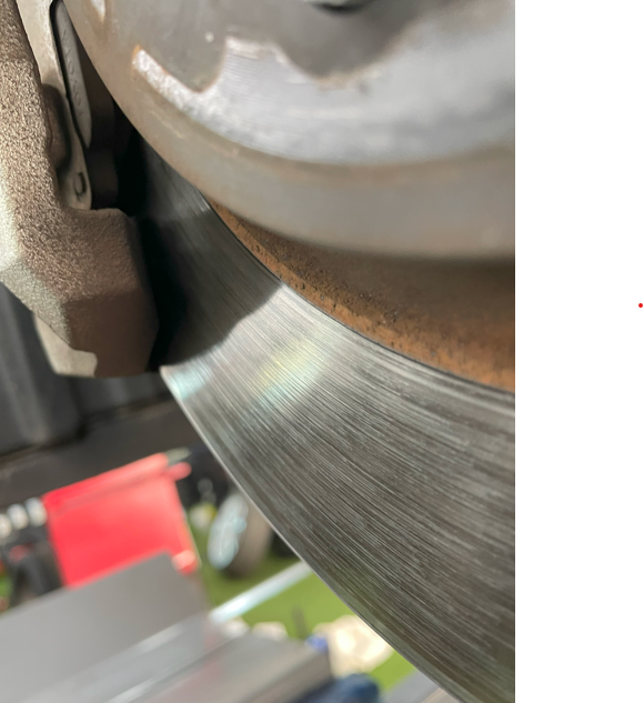 [Insert photo: rotor surface with marked scoring or hot spots]
