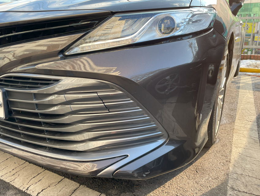 [Insert photo: Camry with front tire removed and placed safely to the side]