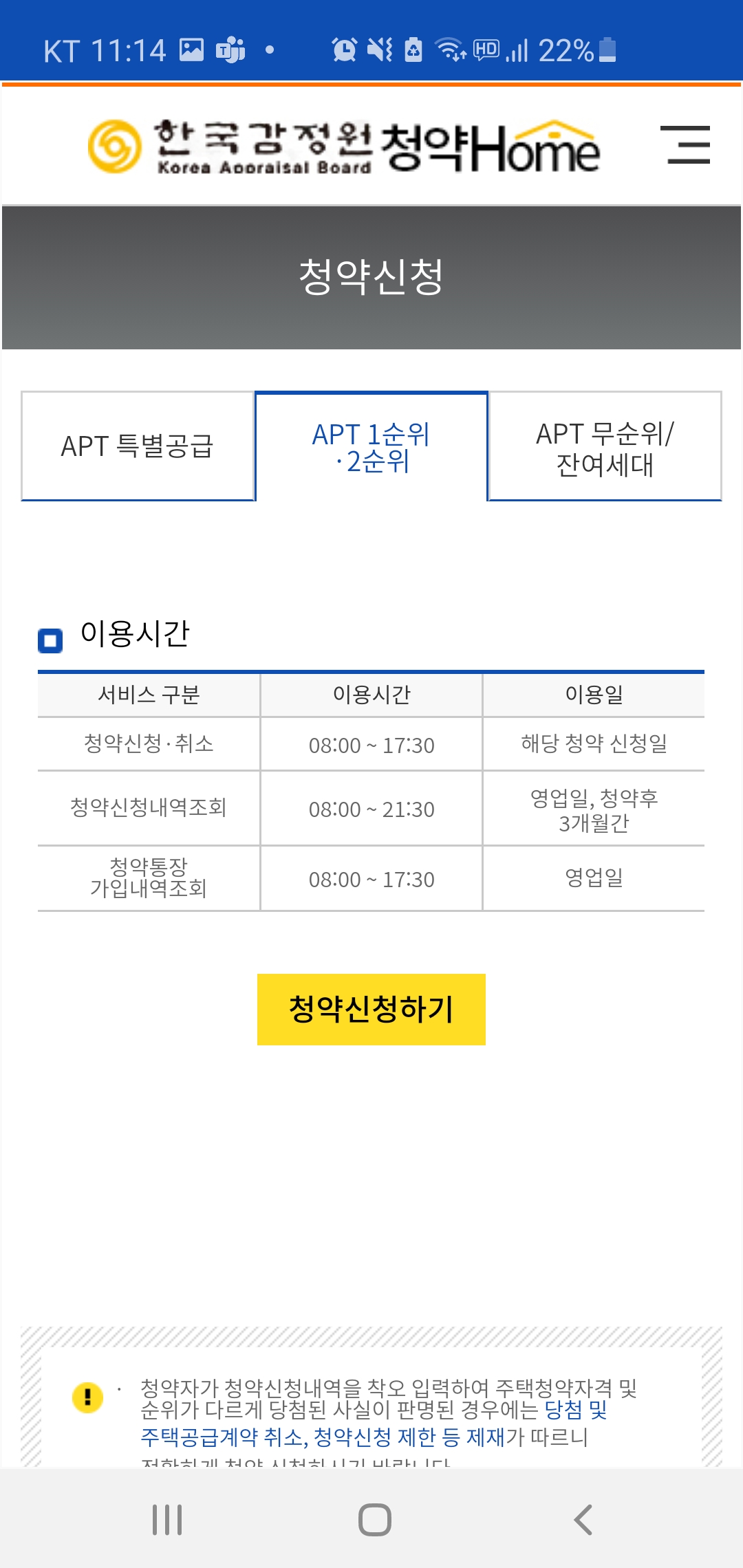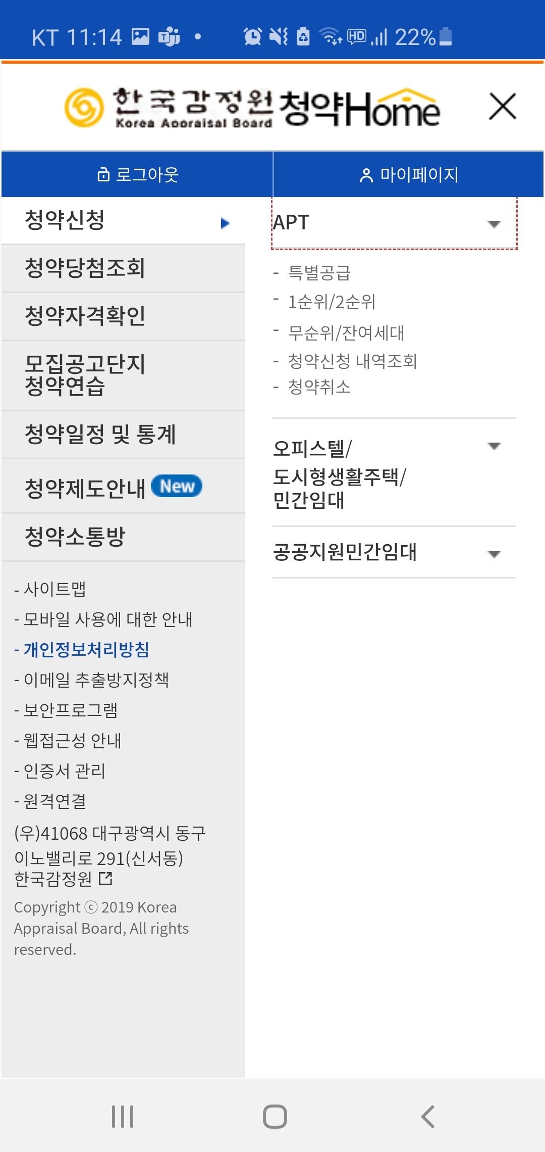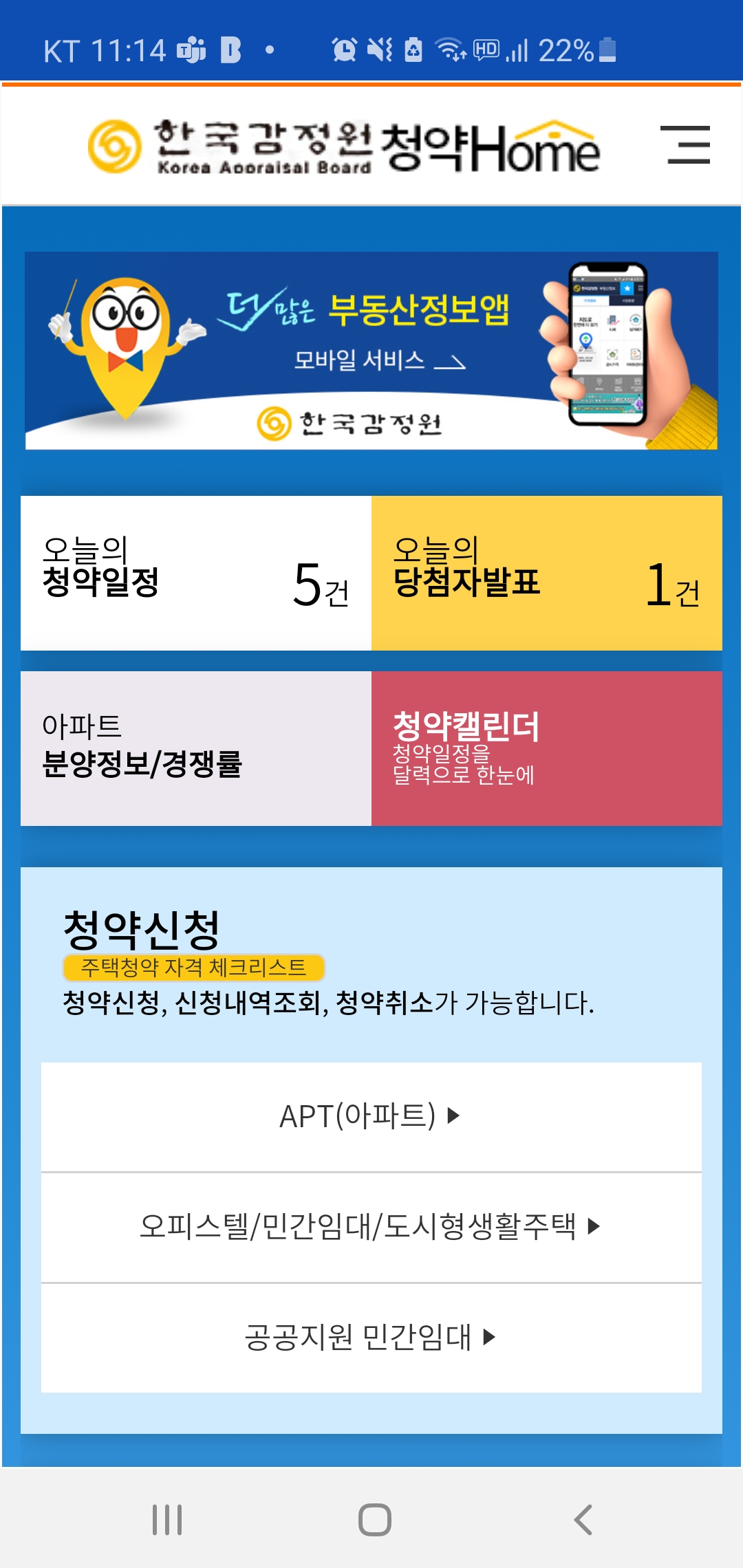 다음은 메뉴에서 보시면 청약신청에 APT가 있는데