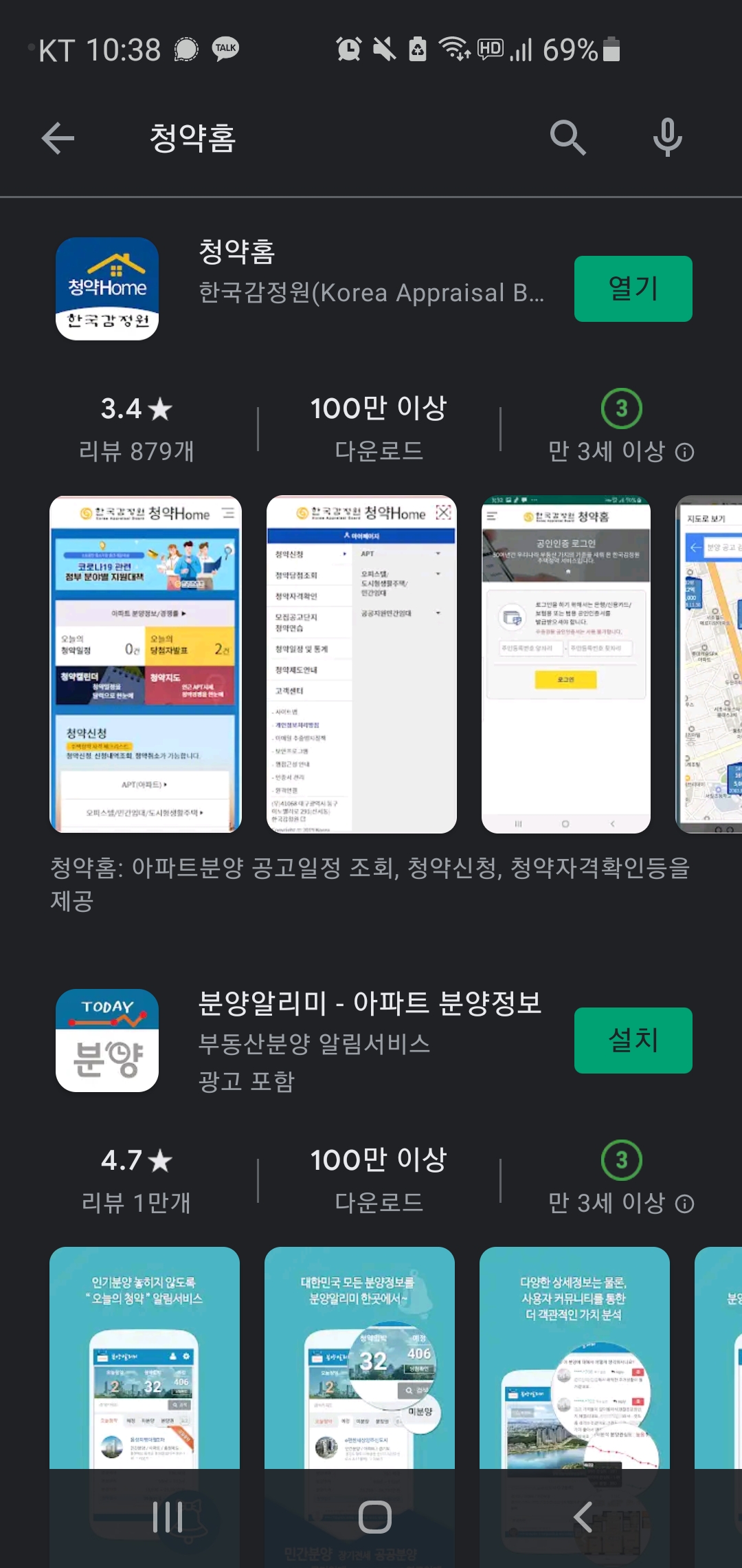 먼저 구글 스토어에서 청약홈 어플을 다운로드합니다.