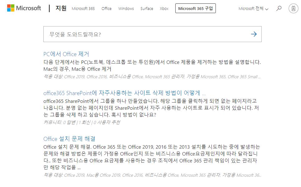 먼저 마이크로 소프트 지원 사이트에 접속합니다.