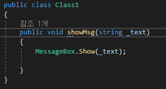 Form에서 Class1에 있는 함수를 인자값을 전달하여 호출해보도록 하자.