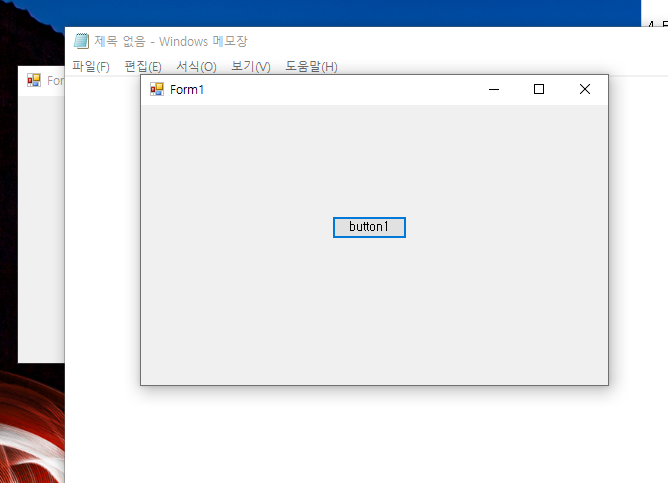 메모장 역시 form1 뒤에 표시가 된다.
